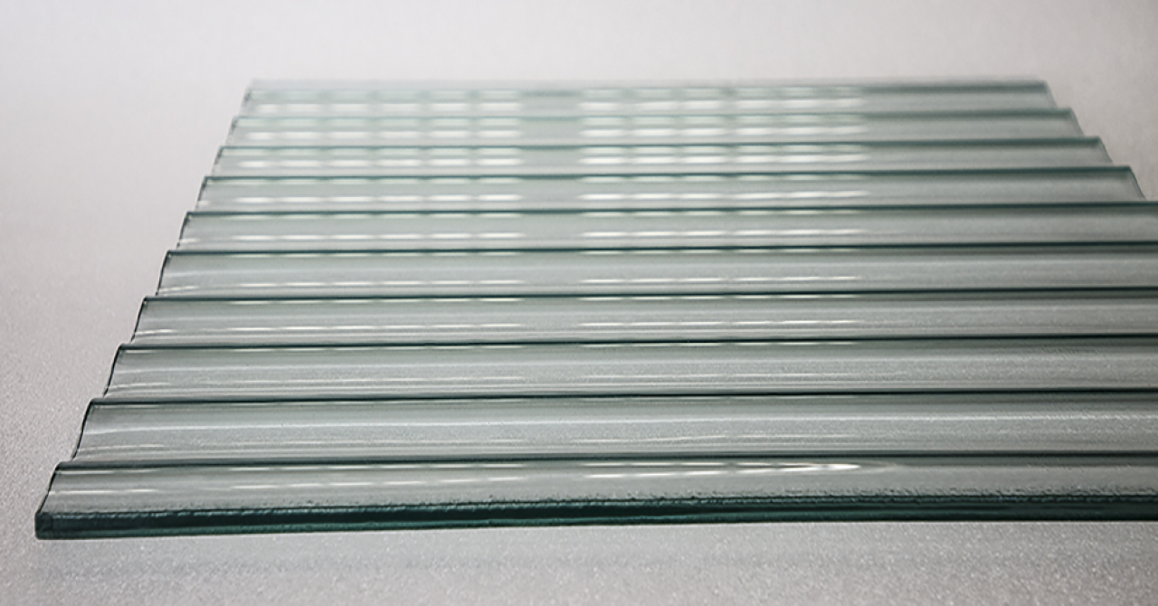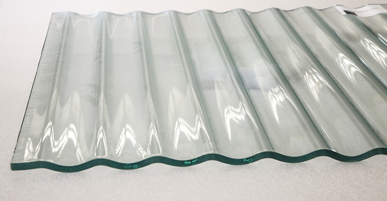 Corrugated Glass is made to your exact specifications and available in low-iron, clear, bronze, grey, blue and green tinted glass.